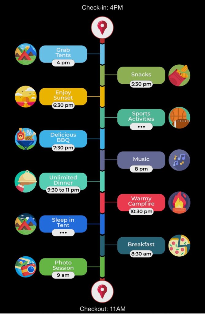 - And when it comes to food, we keep it simple and fresh — straight from local farms and markets to your plate. Every meal is carefully prepared and checked to make sure you enjoy not just the outdoors, but also wholesome, tasty food under the stars.